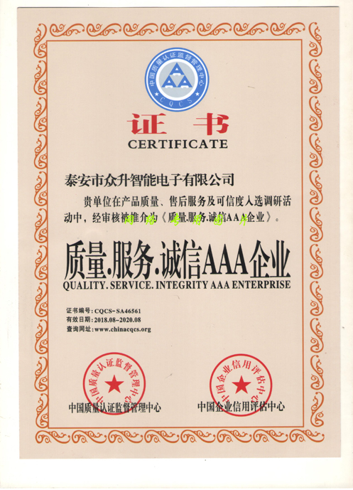 泰安智能电子自成立以来,秉着信誉第一、用户至上的公司宗旨,一直成为专业交通信号机、信号灯杆、交通标志牌生产商,经过不懈的努力,于2018年被列入质量、服务、诚信AAA企业。