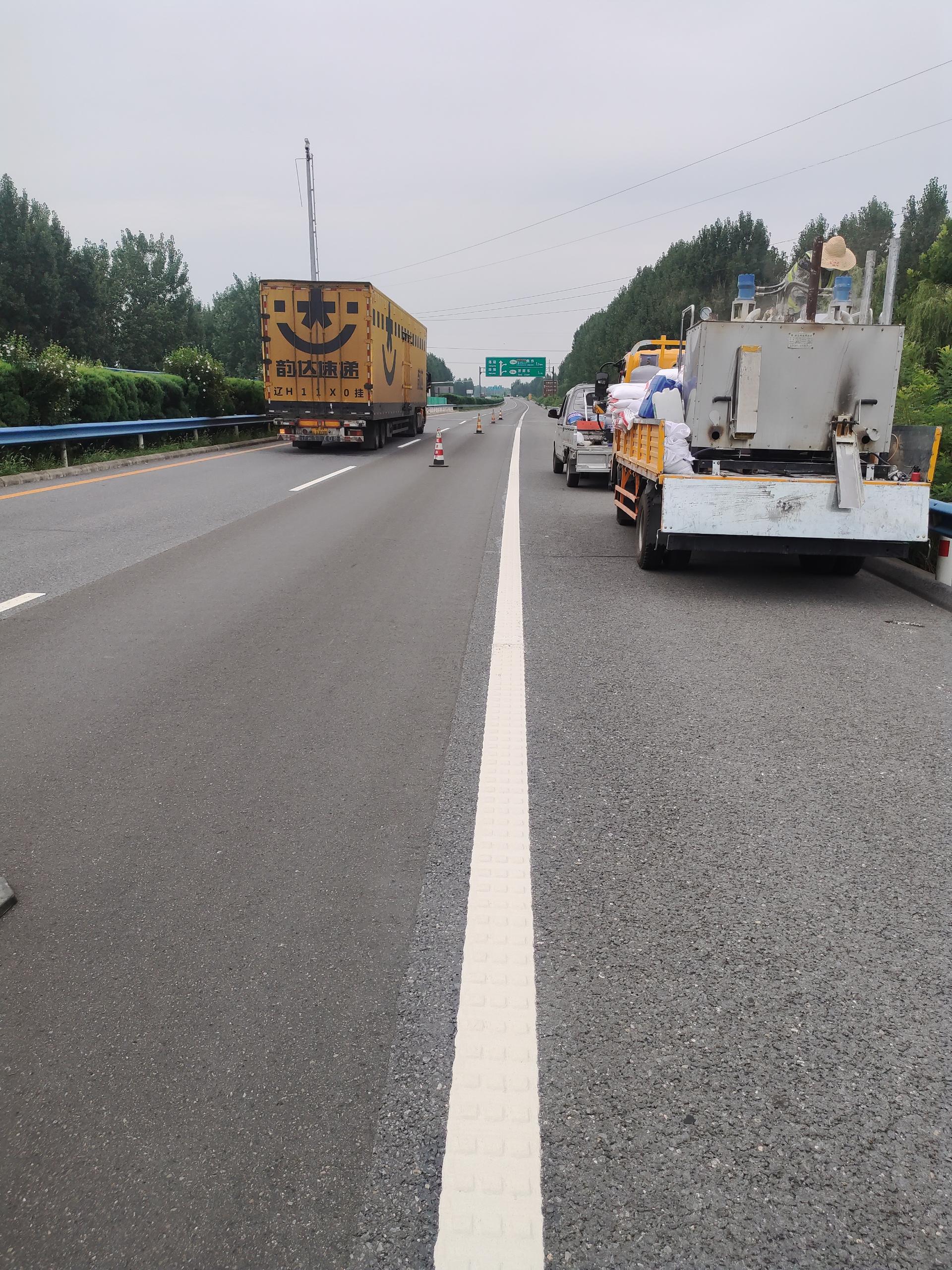 烈日炎炎下的标线施工作业